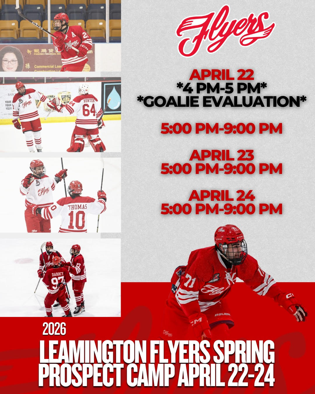 The Leamington Flyers will host their 2026 Spring Prospects Camp this April. We invite interested players to complete the form below.